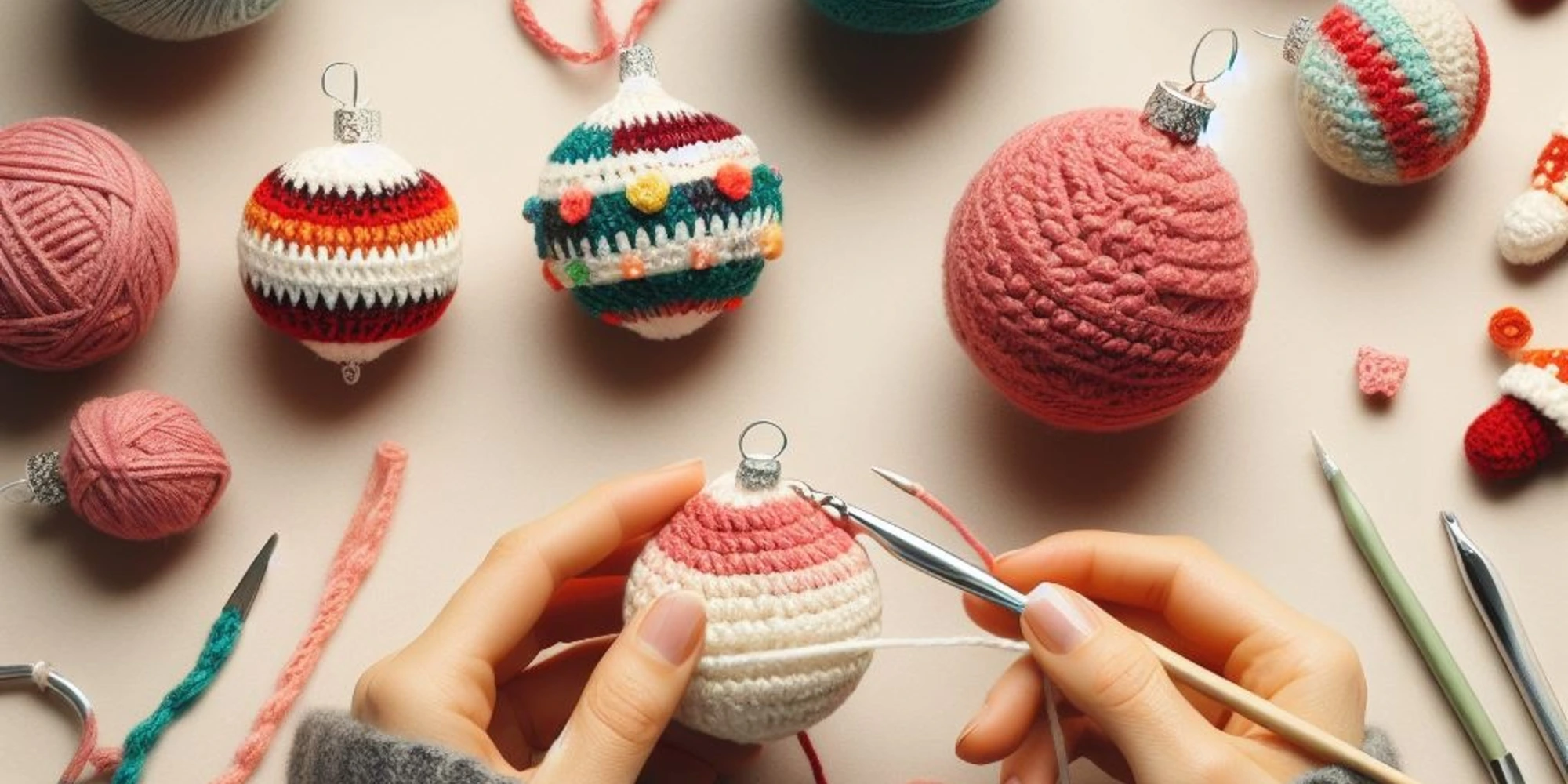 Pe lângă ornamentele tradiționale, poți croșeta și decorațiuni mai neobișnuite, cum ar fi personaje din poveștile de Crăciun sau elemente naturale, cum ar fi conuri de brad sau fructe de iarnă.